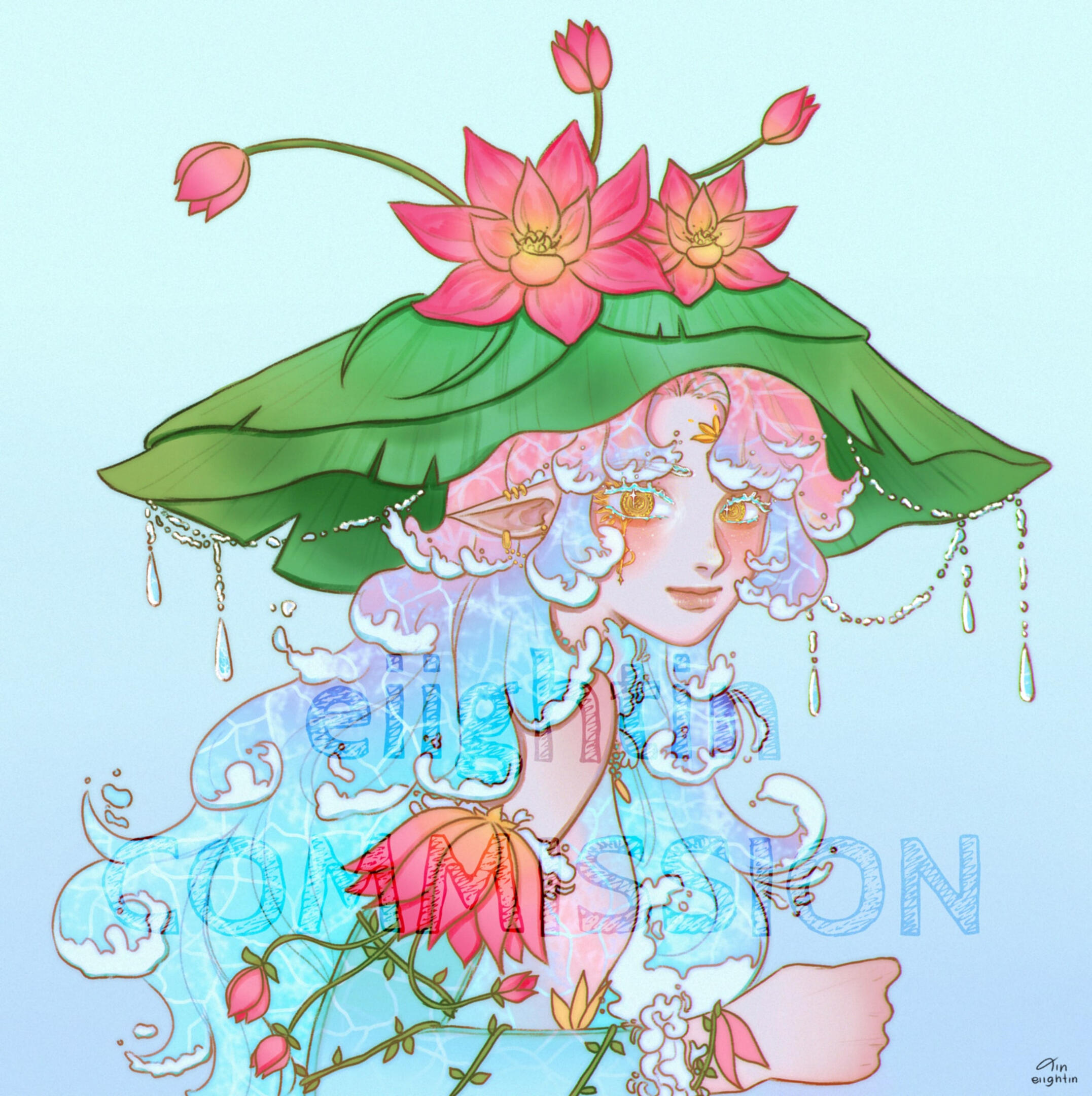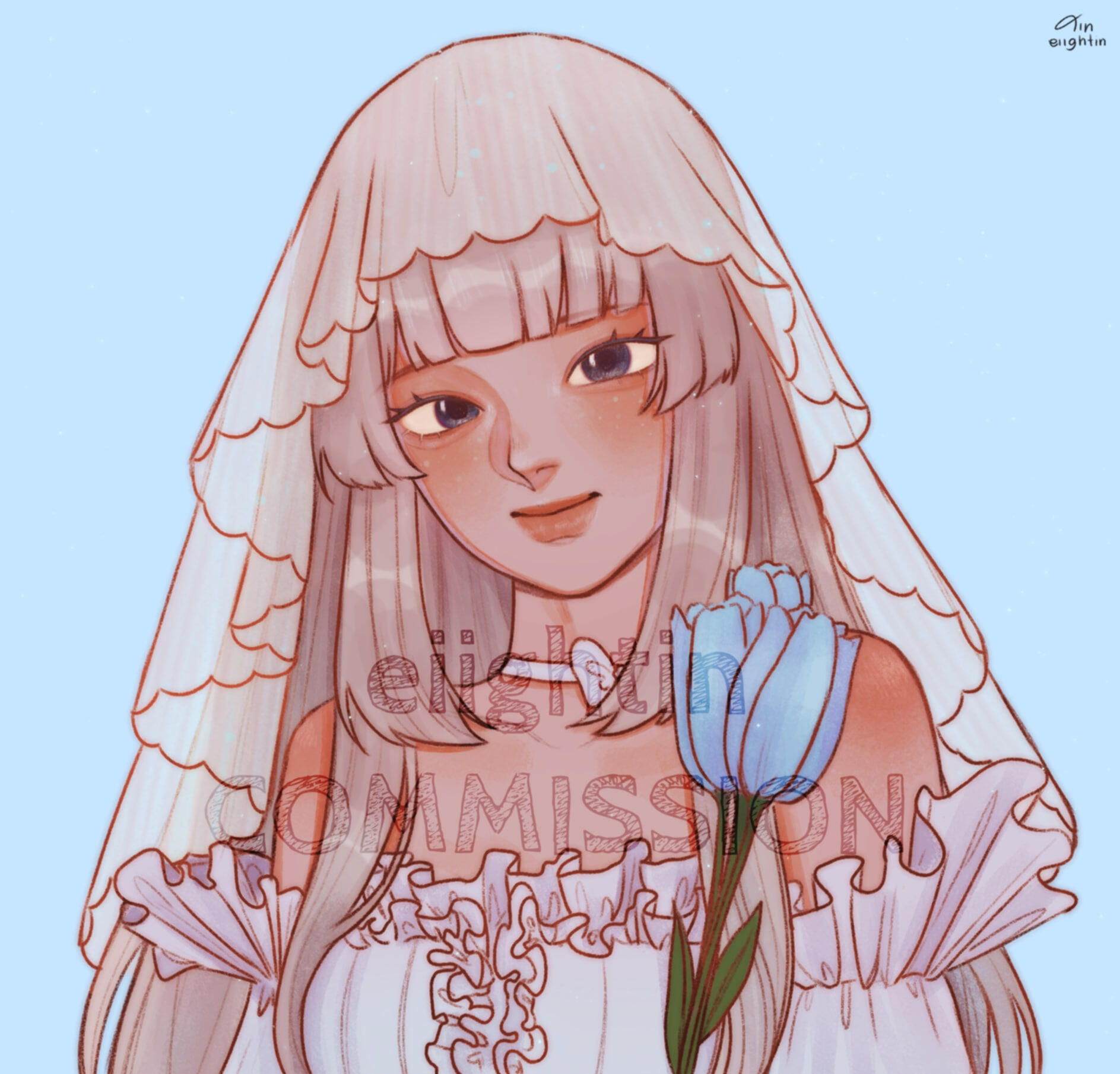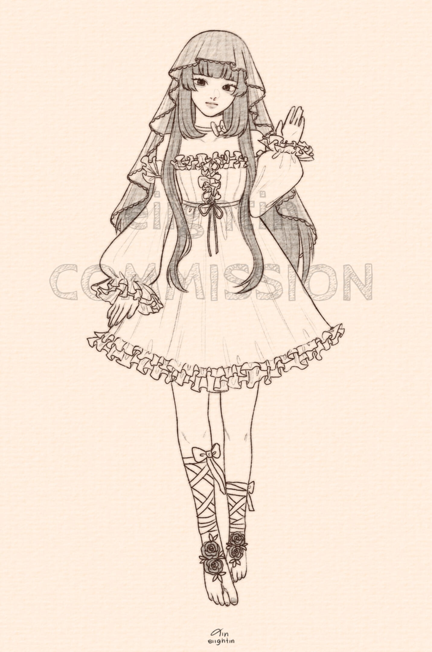 I'll update/show progress: rough sketch, lineart, base color, & final (with watermark)