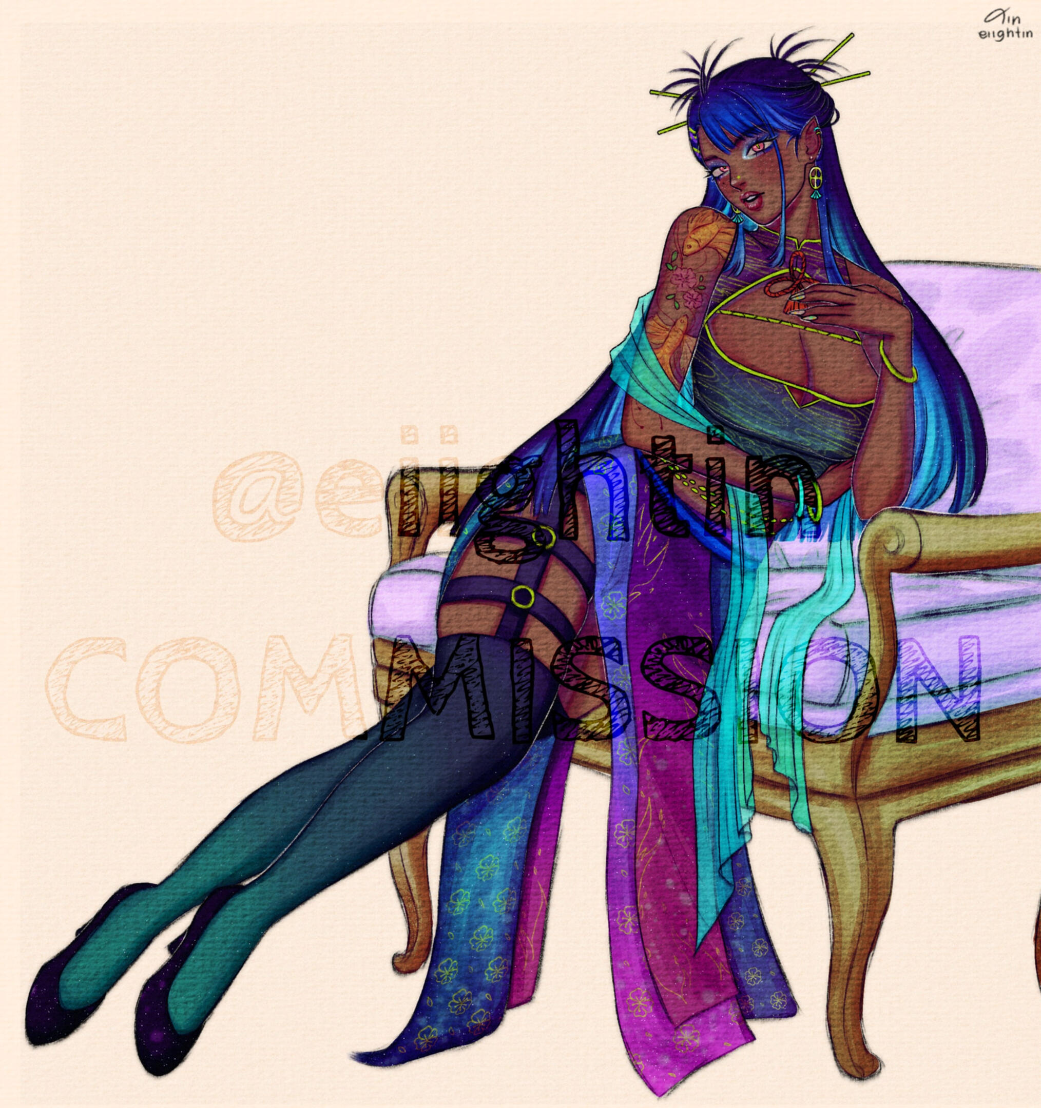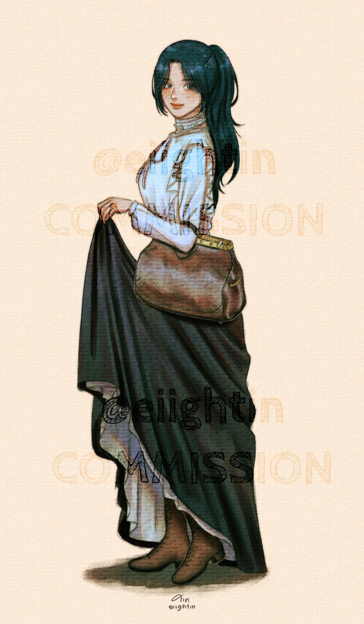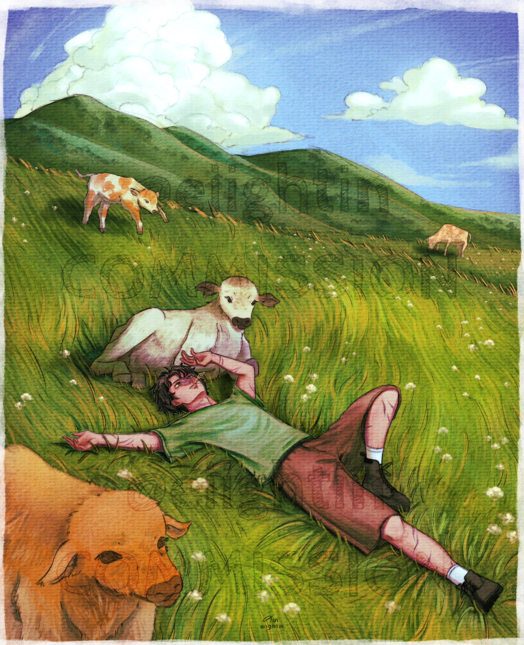 I'll update/show progress: rough sketch, lineart, base color, & final (with watermark)